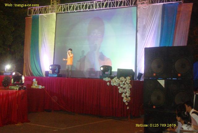 Chính giữa sân khấu là màn hình 300 inch, sẽ được chiếu hình từ phía sau bằng máy chiếu 12,000 ansilumen